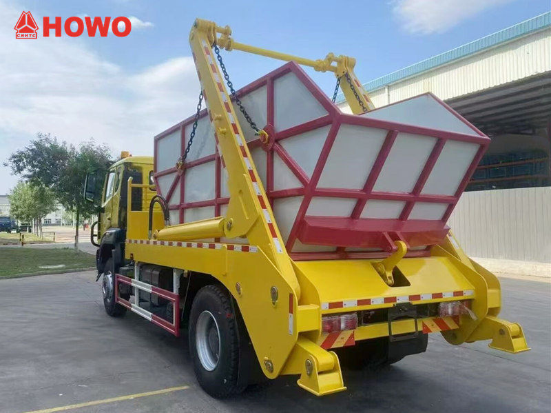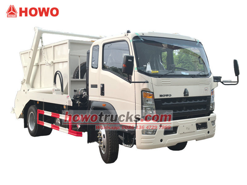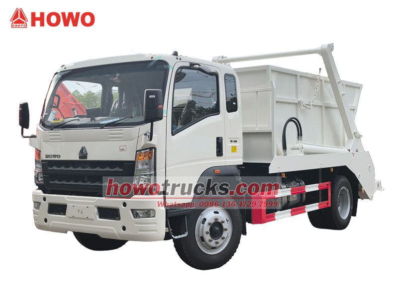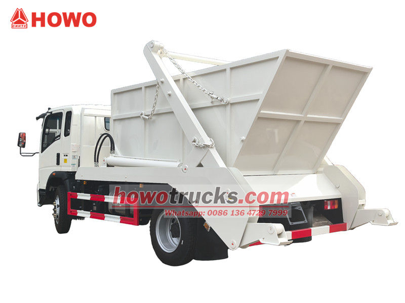 Camion de gunoi cu braț oscilant HOWO 4x2 RHD, numit și camion cu încărcător tip skip HOWO, camion de gunoi cu rulou HOWO 4x2, camion de gunoi cu încărcător tip skip HOWO 6cbm, camion de gunoi cu încărcător tip skip HOWO RHD etc.