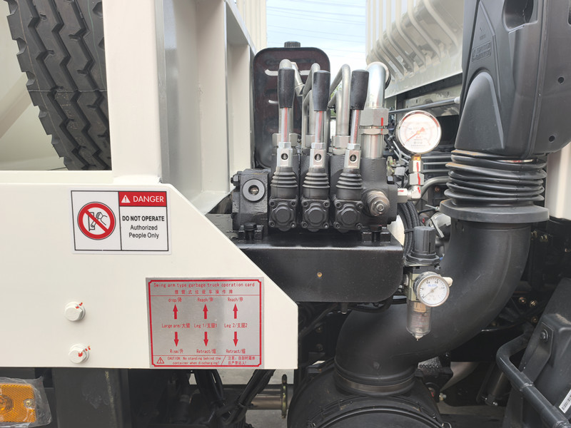 Camionul de gunoi HOWO cu braț articulat este alcătuit în principal dintr-un șasiu, sistem hidraulic, mecanism cu braț articulat și container de gunoi. În timpul funcționării, șoferul controlează sistemul hidraulic pentru a acționa brațul articulat. Cârligul din partea din față a brațului articulat se fixează pe urechile containerului de gunoi, ridicând ușor containerul pe platformă și fixându-l în siguranță.