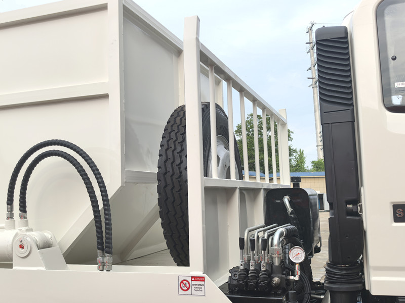 Camionul de gunoi HOWO 4x2 are un design „multi-bin”, permițându-i să fie utilizat cu mai multe containere de gunoi detașabile. În timpul funcționării, camionul poate încărca și descărca rapid un container, apoi poate merge direct la un alt loc de eliminare pentru a înlocui un container complet încărcat, realizând astfel un ciclu de reciclare. Acest design îmbunătățește semnificativ eficiența camionului și evită risipa de resurse cauzată de așteptarea colectării gunoiului. Este potrivit în special pentru zonele cu puncte de colectare a gunoiului dispersate și producție ridicată de deșeuri.