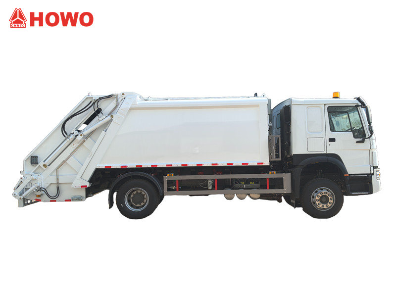 Compactatorul de gunoi Howo de 14 mcb este un vehicul extrem de eficient și fiabil, conceput pentru colectarea și transportul deșeurilor urbane și suburbane. Vehiculul are un ampatament de 4600 mm și este echipat cu un motor diesel WP10.300E22 de 300 CP Euro III cu o cilindree de 9,726 L, o transmisie HW19710 și anvelope 295/80R22.5. Cabina este dotată cu aer condiționat și port USB. Partea superioară a caroseriei este echipată cu un container de gunoi de 14 mcb cu mecanism de golire spate, care acceptă trei moduri de funcționare pentru încărcarea și descărcarea eficientă a gunoiului, satisfăcând nevoile diverselor scenarii de salubritate.