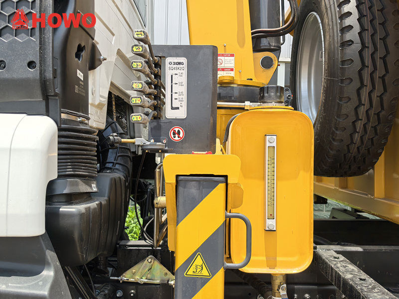 Camionul Howo cu braț articulat și o singură axă de 4 tone este un vehicul de construcții versatil. Echipat cu o macara telescopică, se mândrește cu o înălțime mare de ridicare, o gamă largă de operare și o funcționare flexibilă, facilitând încărcarea, descărcarea și transportul mărfurilor. În plus, platforma camionului dispune de o funcție de autodescărcare, permițând descărcarea rapidă a materialelor prin intermediul unui sistem hidraulic, îmbunătățind semnificativ eficiența transportului și descărcării.