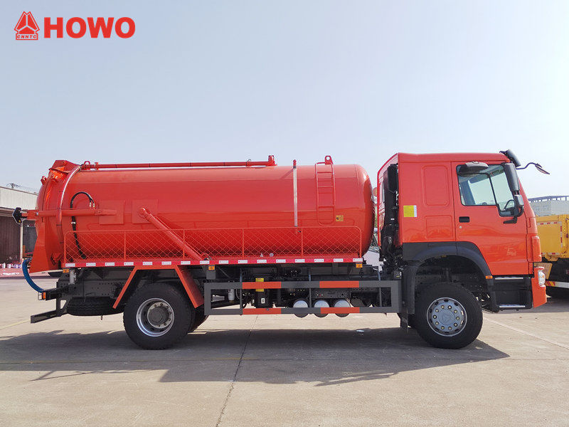 Componentele principale ale camionului de aspirare a apelor uzate HOWO 4x2 includ o priză de putere (PTO), un arbore de transmisie, o pompă de vid, un rezervor de presiune, un sistem hidraulic, o rețea de conducte, un manometru de vid, un vizor pentru fecale și un dispozitiv de spălare a mâinilor. Acesta utilizează o pompă de vid de ultimă generație, cu putere mare de aspirare și o rază lungă de aspirare, fiind deosebit de potrivit pentru aspirarea, încărcarea și descărcarea nămolului din canalizare. Designul său compact, circular, al rezervorului îi permite să reziste la presiuni mai mari și să ofere o putere de aspirare mai mare.