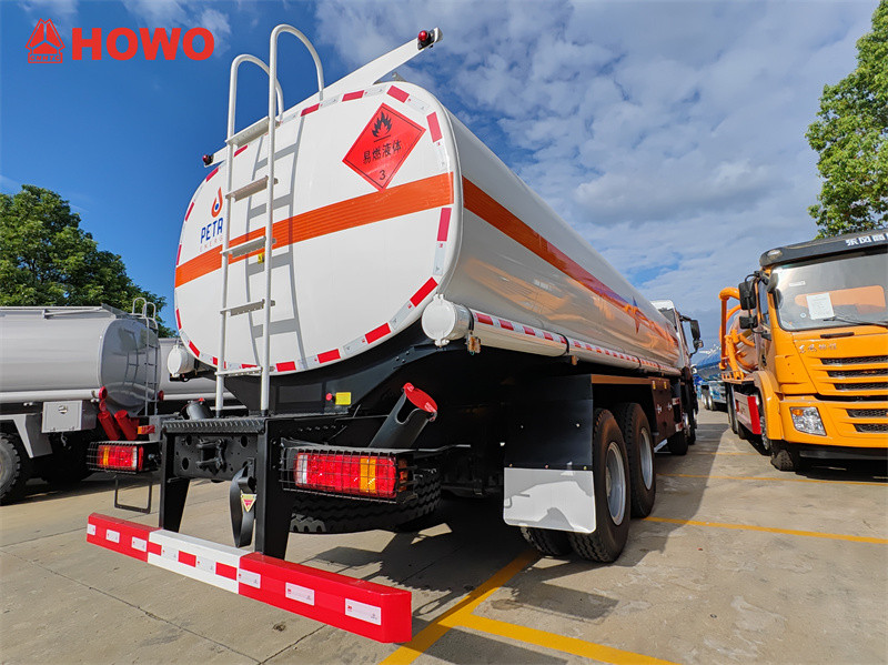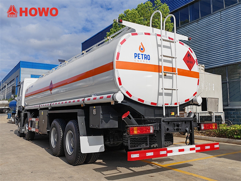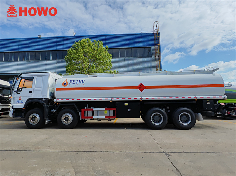Camion cisternă Sinotruk HOWO 8x4 25 CBM, folosește șasiu cu cabină Sinotruk HW76, transmisie 8x4, ampatament 1800+4625+1350 mm, echipat cu motor Sinotruk WD615.47, cutie de viteze HW19710, partea superioară este un rezervor de ulei din oțel carbon de 25 de metri cubi, cu 6 compartimente, cu o capacitate de 3, 4, 4, 4, 5, respectiv 5 metri cubi, fiecare echipat cu o gură de acces standard european, supapă inferioară, supapă de descărcare a uleiului, pasarelă superioară, balustradă, 1 supapă de urgență, 2 conducte de descărcare a uleiului.