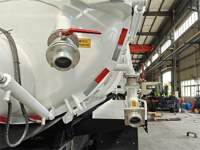Configurație standard | Echipat cu fereastră de inspecție, supapă de refulare, aparat de curățare, conductă de aspirație lungă de 5 metri, separatoare ulei-apă, supapă de preaplin etc. Rezervorul cilindric de vid poate fi ridicat hidraulic la 40-45 de grade. Ușa din spate poate fi deschisă și închisă hidraulic. | |