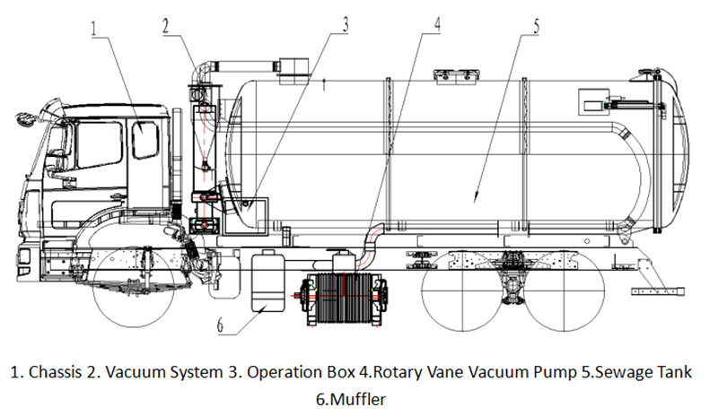 ● Utilizează o pompă de vid cu inel de apă avansată tehnologic, care oferă o aspirație puternică și o rază lungă de aspirație, fiind deosebit de potrivită pentru pomparea, transportul și evacuarea nămolului din canalizare.