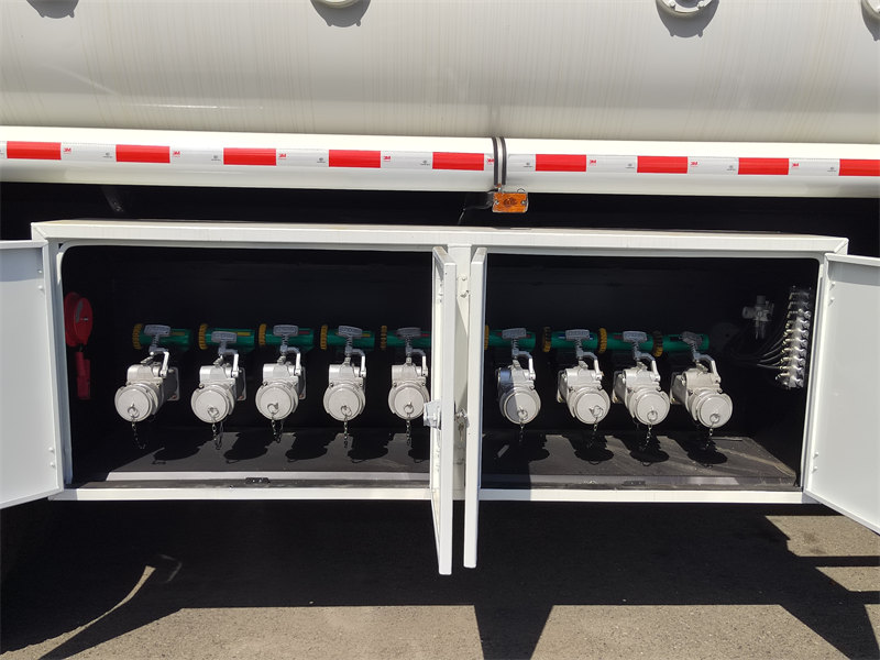 Echipat cu capace de cămine de vizitare la standarde europene (cu supape de aerisire și supape anti-revărsare), sisteme de recuperare a vaporilor și supape ignifuge din aliaj de aluminiu. Rezervorul din oțel carbon ranforsat de 6 mm oferă multiple măsuri de siguranță pentru a preveni eficient scurgerile și riscurile de explozie, respectând standardele de transport al materialelor periculoase.