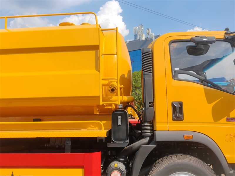 Stainless steel tank, right hand drive is optionalCamionul HOWO 10000L pentru canalizare este un vehicul de salubrizare extrem de eficient, care integrează funcții de curățare la înaltă presiune și aspirare a apelor uzate în vid. Construit pe un șasiu HOWO 4×2 ranforsat pentru sarcini grele, este propulsat de un motor Weichai de 160 CP, combinat cu o transmisie WLY cu șase trepte de viteză, oferind un suport de putere fiabil pentru diverse condiții de lucru complexe. Sistemul său principal de operare este format din pompa germană cu piston de înaltă presiune PINFL PF36, cu o presiune de lucru de 16 MPa, și o pompă de vid cu inel de apă SK-12, oferind o viteză de pompare de 12 metri cubi pe minut. Prin funcționarea coordonată a unui furtun de înaltă presiune de 20 de metri și a unei conducte de aspirație a apelor uzate cu diametrul de 100 mm, acesta efectuează eficient sarcini de curățare a conductelor și aspirare a sedimentelor.