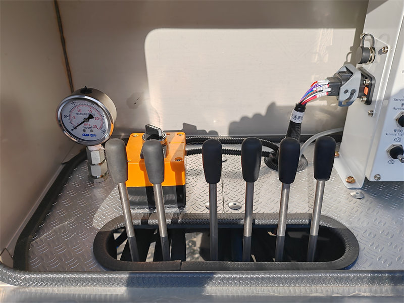 4. Opțiuni Echipamente: Piesă hidraulică de înaltă calitate, braț telescopic de ridicare pe un singur nivel, două unități de troliu hidraulic de 12 tone, trusă de scule, două stabilizatoare, dispozitiv de acționare manuală, două reflectoare, o lampă de alarmă și accesorii de bază