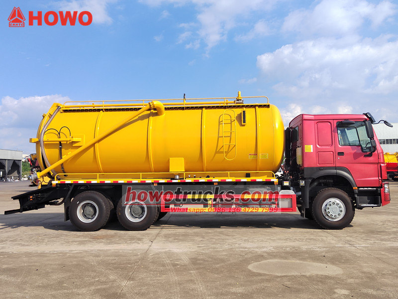 Aspiratorul HOWO este construit pe un șasiu SINOTRUK HOWO 6×4 și dispune de un rezervor din oțel carbon de 20 de metri cubi, asociat cu o pompă de vid italiană Jurop, capabilă să genereze un nivel de vid ridicat de 93%. Propulsat de un motor Weichai de 400 CP și o cutie de viteze cu 10 trepte, vehiculul este echipat cu un capac spate blocat hidraulic, un sistem de alarmă anti-revărsare și un furtun de aspirație de 10 metri. Este special conceput pentru operațiuni de transport deșeuri la scară largă în canalele râurilor și rețelele de conducte municipale.