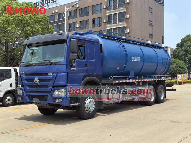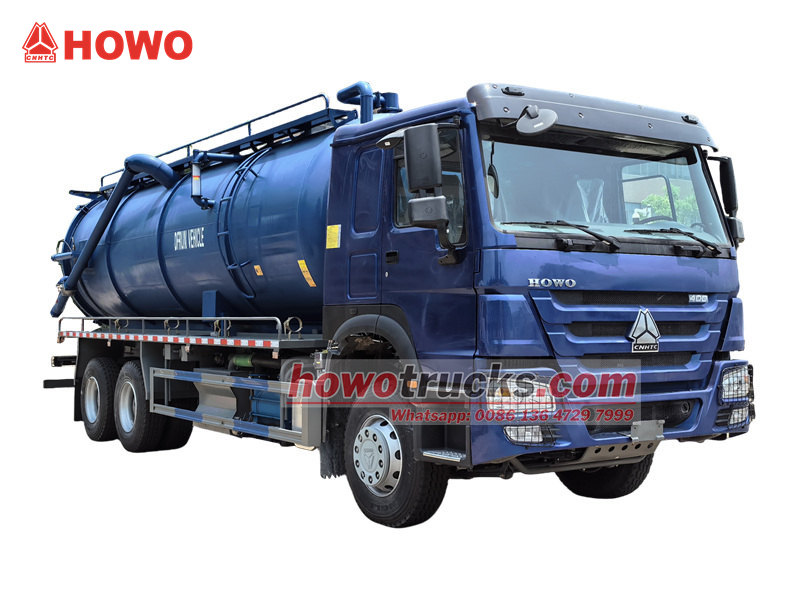 16000+16000Camionul cisternă cu vid HOWO 20000L, produs de CS TRUCKS, este un vehicul de salubritate conceput pentru curățarea și transportul apelor uzate, nămolului și altor deșeuri lichide. Construit pe un șasiu robust HOWO 6×4 heavy-duty, este echipat cu un sistem de aspirație cu vid și un rezervor de stocare pentru o manipulare eficientă a deșeurilor. Propulsat de un motor diesel WP12.400E32 de 400 de cai putere, acest camion cisternă septică HOWO este cuplat cu o transmisie manuală cu 10 trepte și un sistem de frânare cu aer. Componenta sa principală include o pompă de vid cu inel de apă cu o capacitate de aspirație de 20,5 m³/min, completată de un furtun de aspirație lung de 10 metri și un rezervor din oțel carbon cu grosimea de 6 mm. Cu o înălțime de aspirație de peste 9 metri, gestionează eficient sarcini dificile de curățare a apelor uzate.