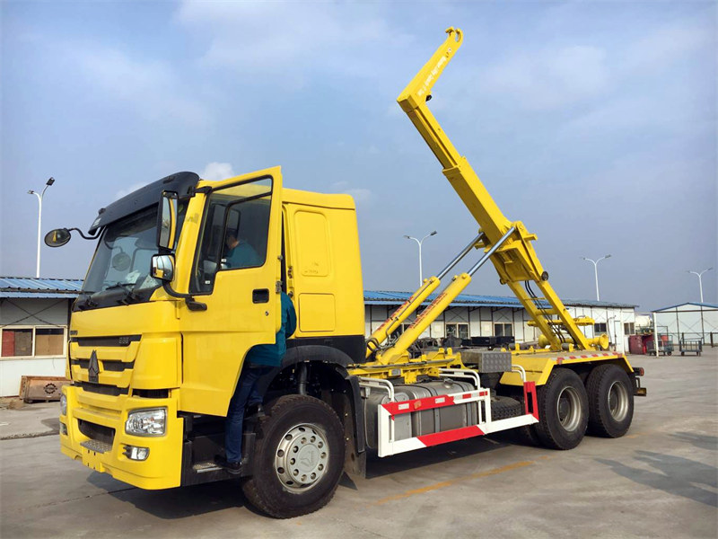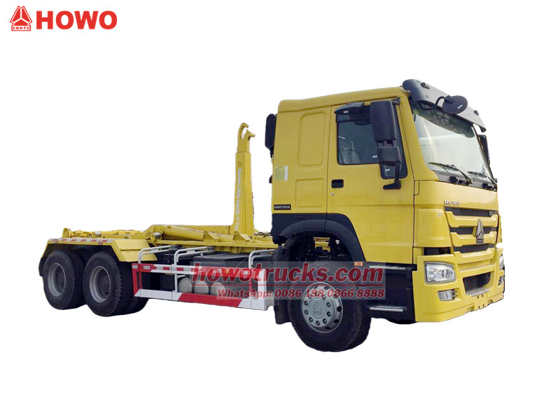 ♦ The Howo garbage hook lift truck has a rated load capacity of 30 tons and a garbage bin volume of up to 20 CBM