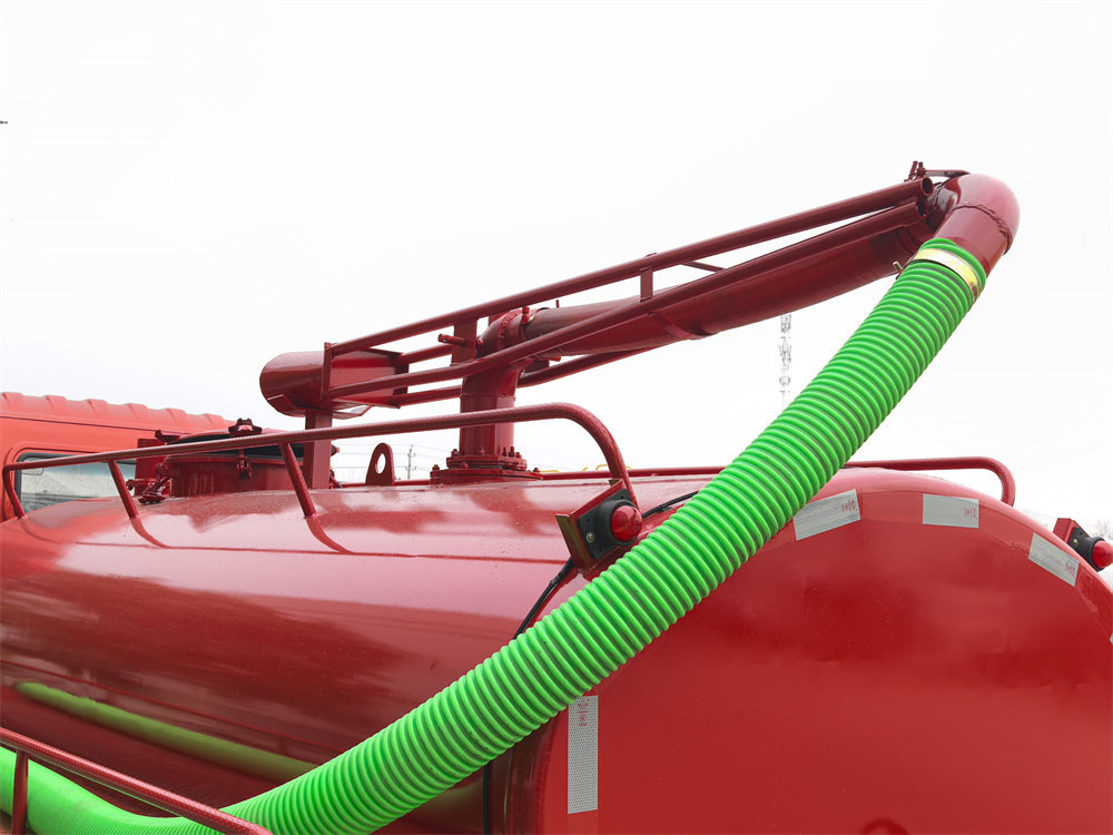• Rezervor: Rezervor din oțel carbon de 4 metri cubi, ≥ Grosime de 4 mm, tratată cu un strat anticoroziv și rezistent la rugină pentru o durată de viață extinsă. În partea superioară este instalată o brață de aspirație retractabilă de 6 metri, permițând funcționarea în unghiuri multiple. În spate este instalată o supapă de refulare, permițând descărcarea prin gravitație sau cu aer comprimat.