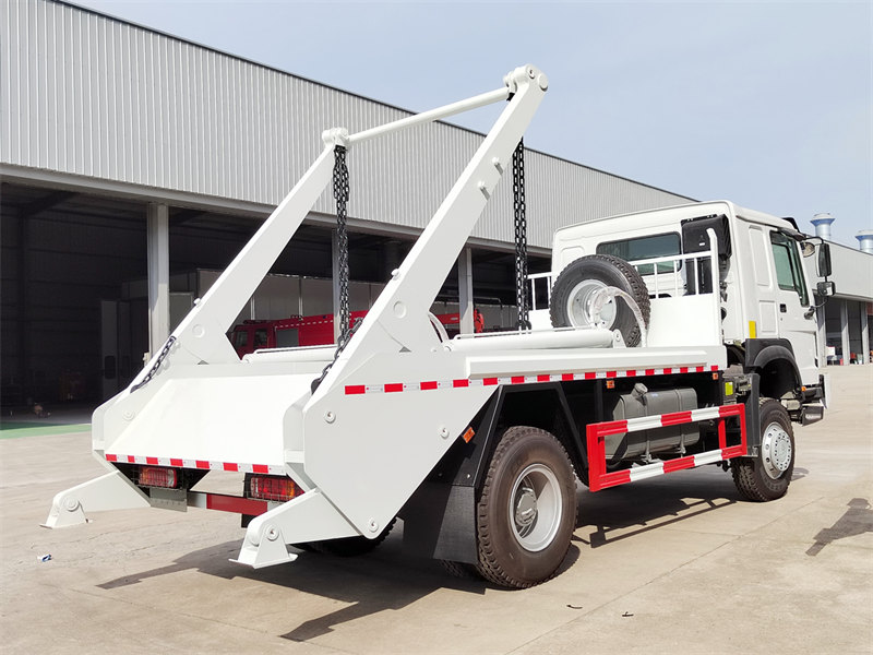 10000Camionul de gunoi HOWO 4×4 cu încărcător tip skip este un vehicul specializat în salubritate care utilizează un sistem hidraulic pentru a acționa un mecanism cu braț oscilant pentru încărcarea și descărcarea mecanizată a containerelor de gunoi. Este construit pe un șasiu HOWO 4×4 cu tracțiune integrală, propulsat de un motor Sinotruk de 266 CP și echipat cu o transmisie HOWO cu 10 trepte de viteză și punți de înaltă rezistență, asigurând o capacitate portantă puternică și fiabilitate chiar și în condiții de drum dificile. Suprastructura este fabricată din oțel de înaltă rezistență, oferind performanțe robuste și durabile. Sistemul hidraulic central cu braț oscilant funcționează lin și puternic, cu o capacitate de ridicare de peste 6 tone. Fiecare ciclu operațional durează mai puțin de un minut, asigurând o eficiență ridicată și economie de timp.