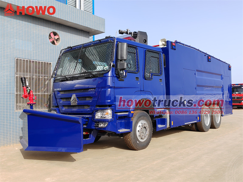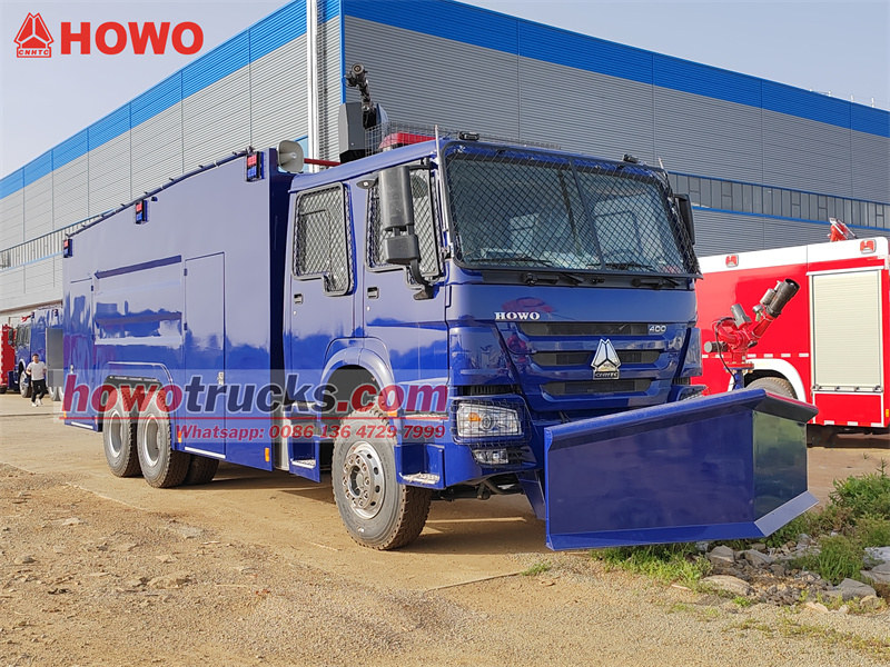 Camionul cu tun de apă antiexplozie HOWO 6x4 este modificat pe baza șasiului cu cabină dublă HOWO HW76. Are un ampatament de 4600+1350 mm, este echipat cu un motor WP12S400E201 și o cutie de viteze HW19710. Vehiculul este echipat cu o caroserie antiexplozie, un tun principal în partea superioară și un tun auxiliar fix cu apă, cu tragere frontală, în față, care poate realiza controlul revoltelor pe toate direcțiile, cu debit mare și pe distanțe lungi. Are o cabină cu două rânduri și un echipaj de 6 persoane. Cisterna cu apă are o capacitate de 10.000 l, cisterna cu spumă de 100 l, cisterna cu vopsea de 100 l, iar rezervorul de apă pentru piper de 100 l. Este echipat cu o pompă de incendiu CB10/60. Partea frontală a vehiculului este echipată cu plăci de oțel antirevoltă și o lopată hidraulică puternică din oțel pentru depășirea obstacolelor.