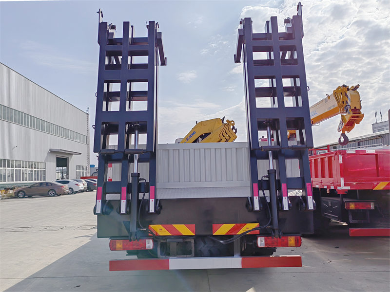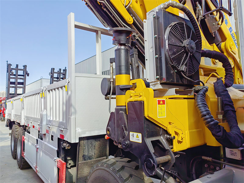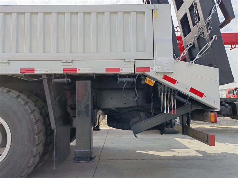 ♦ Camionul de marfă Howo 8x4 este echipat cu o macara cu braț articulat de 16 tone (cuplu de 10 tone/înălțime de 8,6 m) și o funcție de transport cu platformă de 20 de tone..
