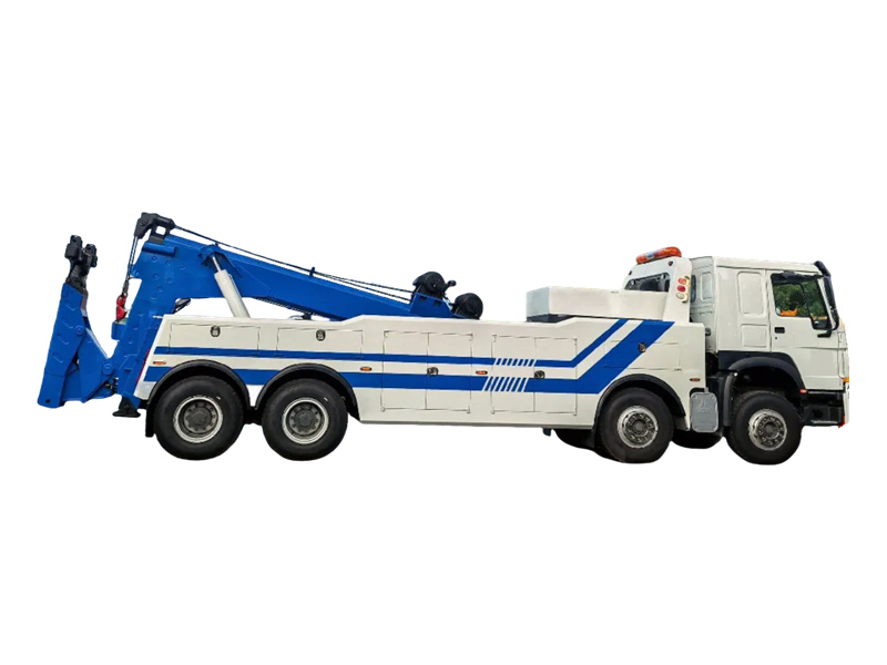 Camionul de tractare HOWO 8×4 este un vehicul de salvare profesional, cu capacități integrate de remorcare și ridicare. Construit pe șasiul robust HOWO 8×4 și propulsat de un motor Weichai de 400 de cai putere, se mândrește cu o capacitate de ridicare de 16.000 kg și cu două trolii de 80 kN. Acest lucru permite operațiuni simultane de ridicare, susținere și remorcare, fiind extrem de eficient în manipularea vehiculelor grele accidentate pe autostrăzi și drumuri urbane, pentru o degajare rapidă.