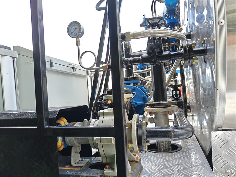 •Pompă de asfalt: Pompă inteligentă de ulei cald răcită cu aer RY40-25-160, debit 10m³/h, 2900r/min, permite livrarea stabilă a asfaltului la temperatură înaltă; corpul pompei are o funcție de încălzire încorporată pentru a preveni solidificarea asfaltului.