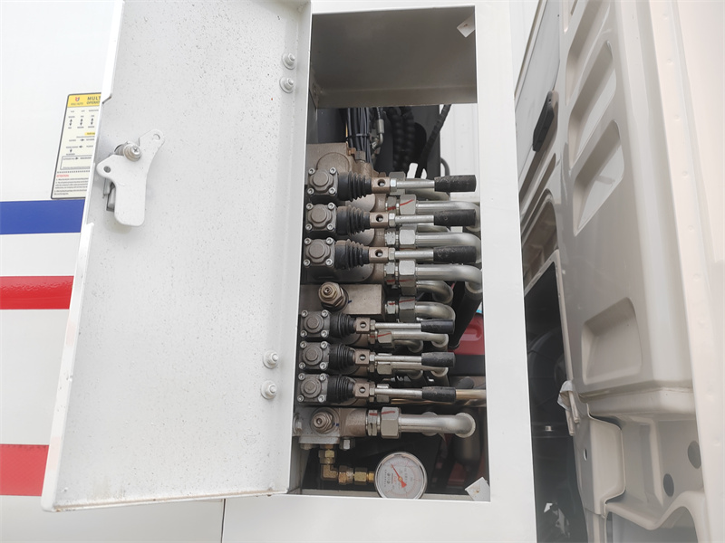 4. Operațiuni în mai multe locații: Echipat cu un panou de control electric montat în cabină, o manetă hidraulică manuală pe partea șoferului și o cutie de control electrică pentru ușa din spate, vehiculul oferă o operare convenabilă din mai multe poziții.