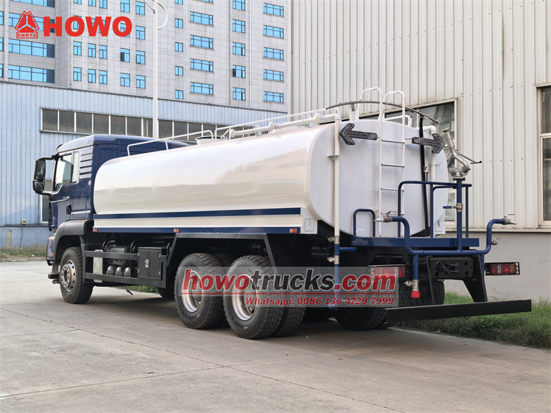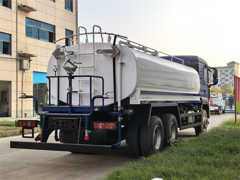 stainless steel tank, 6×6, RHD is optionalCamionul HOWO TX 18000L cu sistem de stropire cu apă este un vehicul de salubrizare multifuncțional și de mare capacitate, construit pe șasiul HOWO TX heavy duty, având un volum central al rezervorului de apă de 18.000 de litri. Este propulsat de un motor diesel Weichai de 380 de cai putere și o transmisie manuală cu 10 trepte, oferind performanțe robuste și o capacitate portantă mare. Rezervorul este construit din oțel carbon de 5 mm și acoperit cu un strat anticoroziv, în timp ce structura sa internă include patru compartimente și deflectoare anti-supratensiune pentru a spori stabilitatea la volan. Vehiculul integrează un sistem de pompe centrifuge Weilong, care permite drenajul autoamorsant și funcționează cu un debit de 60 m³/h. De asemenea, dispune de un sistem de pulverizare multimod, inclusiv spălare frontală, pulverizare spate, pulverizare laterală și un tun de apă de înaltă presiune cu o rază de acțiune de 28 de metri, ceea ce îl face potrivit pentru diverse aplicații, cum ar fi verdeața urbană, suprimarea prafului, răcirea și stingerea incendiilor de urgență.
