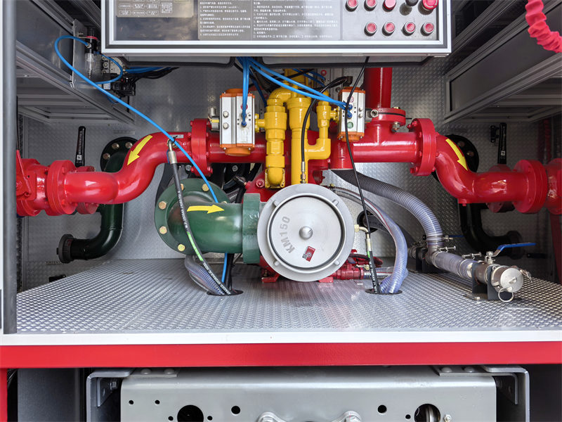 Sistem de rezervor: Partea din față este camera tehnică, unde sunt depozitate diverse echipamente de stingere a incendiilor (cum ar fi furtunuri de incendiu, stingătoare, topoare de pompieri, chei, ciocane, târnăcoape etc.) pentru acces facil. În mijloc se află un rezervor de apă din oțel carbon de 6 mcbm și un rezervor de spumă de 2 mcbm, ambele echipate cu guri de vizitare în partea superioară.