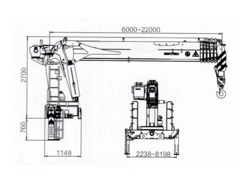 Greutatea macaralei este 3570 kg și spațiul de instalare este 2350 mm. Panoul de control poate fi selectat în limba engleză sau în alte limbi pentru a facilita utilizarea de către utilizatorii cu nevoi diferite. Howocamion de marfămacara montată de 20 de tone oferă, de asemenea, o varietate de configurații opționale, cum ar fi macarale cu braț telescopic, cutii basculante hidraulice, grosimea și înălțimea cutiei personalizate în funcție de nevoi și cutii opționale cu telecomandă.