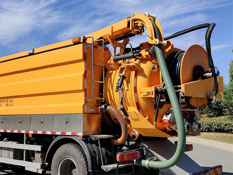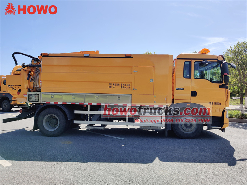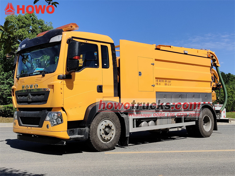 Camionul de dragare combinată HOWO 4x2 de 11 mcb este modificat pe baza șasiului semi-cabină HOWO TX 2280. Are un ampatament de 4500 mm și este echipat cu un motor Sinotruk MC07.31-60 și o cutie de viteze cu 6 trepte. Este echipat cu un rezervor de canalizare de 6,7 mcb și un rezervor de apă curată de 4,2 mcb, fabricat din oțel carbon cu grosimea de 5 mm. Pe ambele părți ale corpului rezervorului există cutii de scule, iar o parte este echipată cu o cutie de control, un tambur pentru hayon, o supapă de refulare, o scară, un tub de vizor etc. Este echipat cu o pompă de vid Jurop PVT400 și o pompă de curățare de înaltă presiune 3N2-SZ.