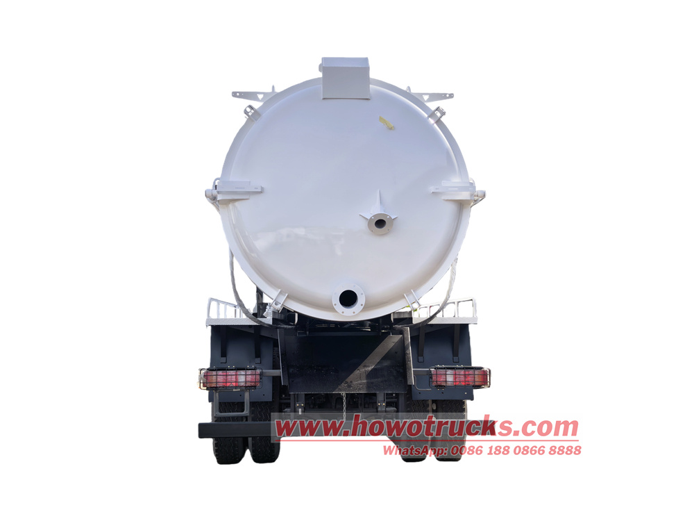 16000*2This Nigeria HOWO NX septic tanker cleaning truck is a specialized vehicle designed for Nigeria heavy-duty sewage suction operations. Based on the Sinotruk HOWO NX400 chassis, it integrates a 20 cubic meter sewage suction tank and a 2BE-204 water circulation vacuum pump, enabling efficient sewage suction. This truck features self-priming and self-discharging capabilities, a large capacity, convenient transportation, and a powerful vacuum pump with a long suction range, making it suitable for heavy-duty operations such as urban pipe network dredging and septic tank cleaning.